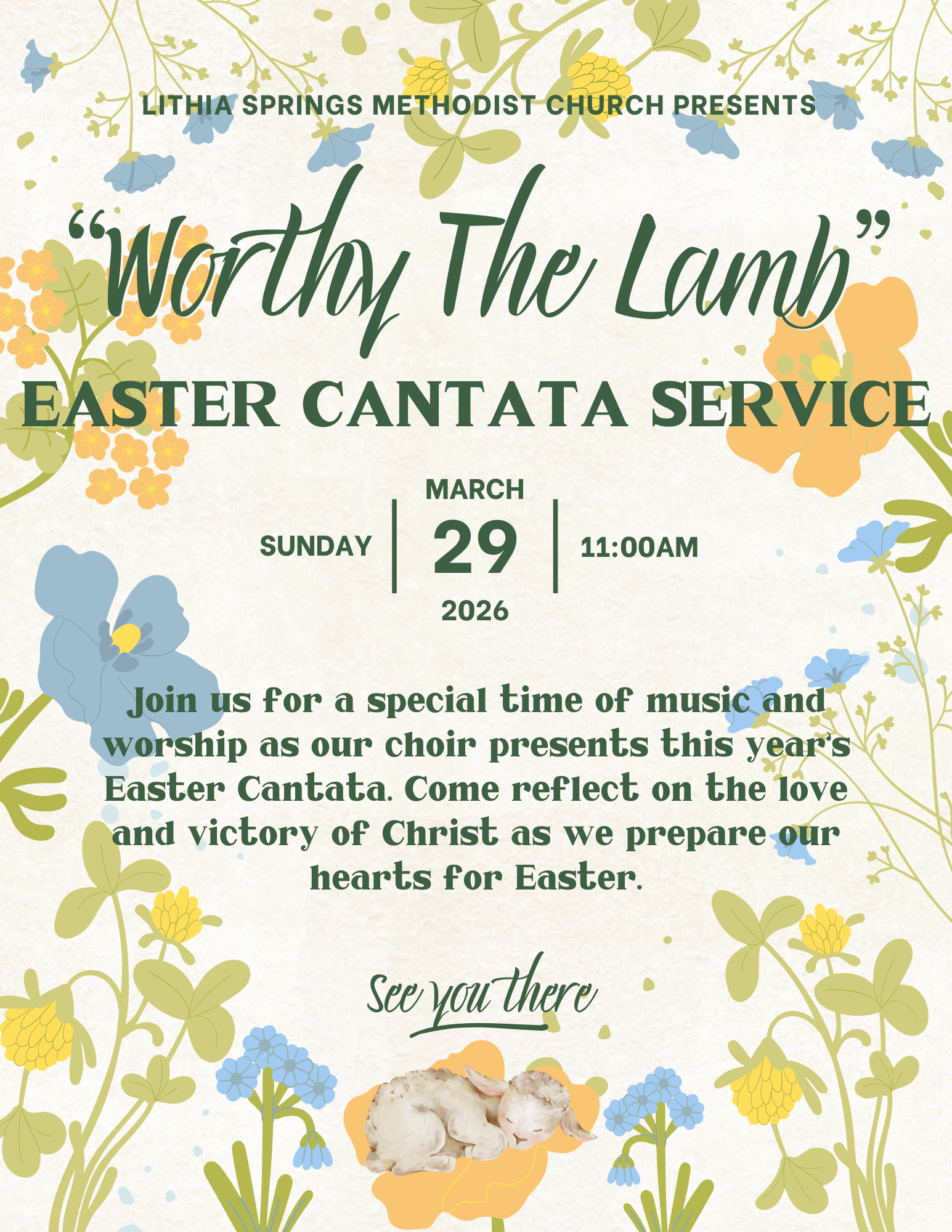 Join us March 29th during worship for our Easter Cantata, “Worthy The Lamb.”